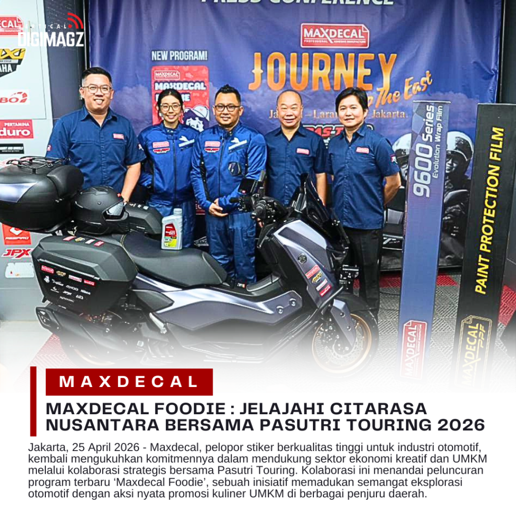 Jakarta, 25 April 2026 – Maxdecal, pelopor stiker berkualitas tinggi untuk industri otomotif, kembali mengukuhkan komitmennya dalam mendukung sektor ekonomi kreatif dan UMKM melalui kolaborasi strategis bersama Pasutri Touring. Kolaborasi ini menandai peluncuran program terbaru ‘Maxdecal Foodie’, sebuah inisiatif memadukan semangat eksplorasi otomotif dengan aksi nyata promosi kuliner UMKM di berbagai penjuru daerah.